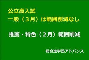 推薦・特色範囲削減 公立高入試一般は範囲削減なし
