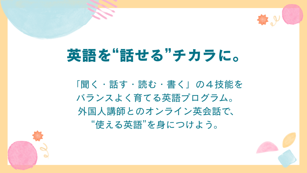 英語を“使える力”に変える、小学生のための英会話プログラムです。