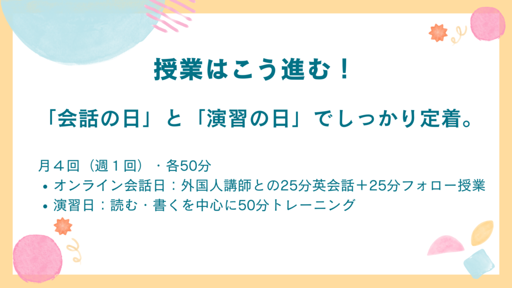 「話す」→「理解する」→「使える」の循環で定着を図ります。