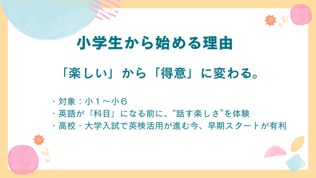 楽しみながら学ぶ経験が、将来の英語力の土台になります。