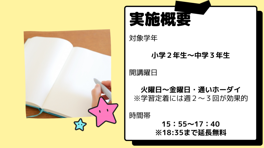 → はい!大丈夫です◎小学2年生~中学3年生まで対象です。