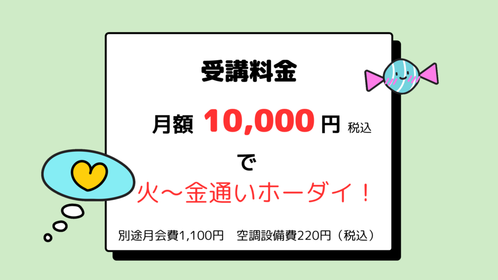 受講料金 月額10,000円(税込)で、火~金・通いホーダイ! 20名限定募集!