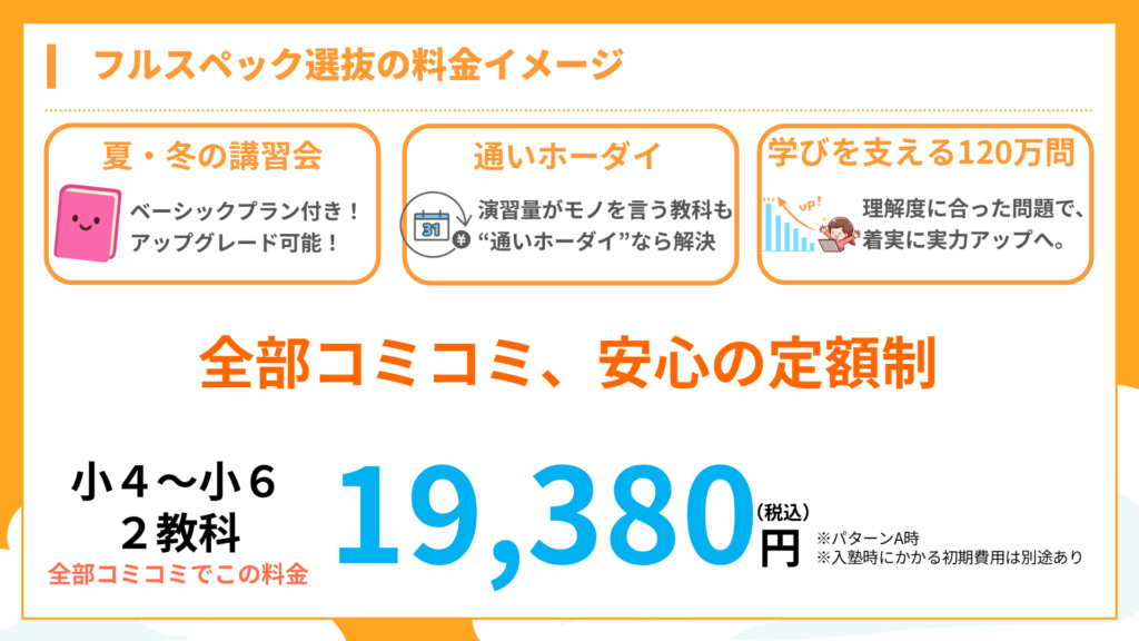 ※フルスペック選抜プランとは異なり、サマープログラム(夏期講習)・ウインタープログラム(冬期講習)は付随しておりません。