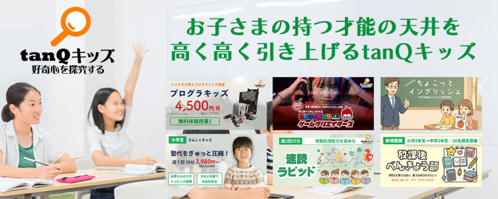 「tanQキッズ」は、お子様の「やってみたい!」を応援します。 一緒に学びの楽しさを知り、将来の選択肢を広げませんか?