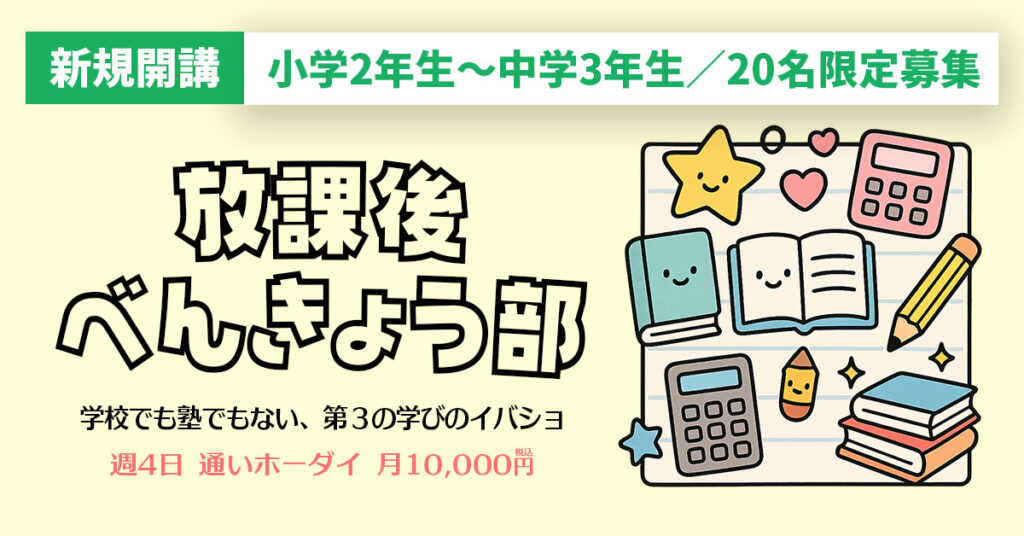 放課後べんきょう部の授業内容や体験会は、上部バナーをクリックしてご確認ください!