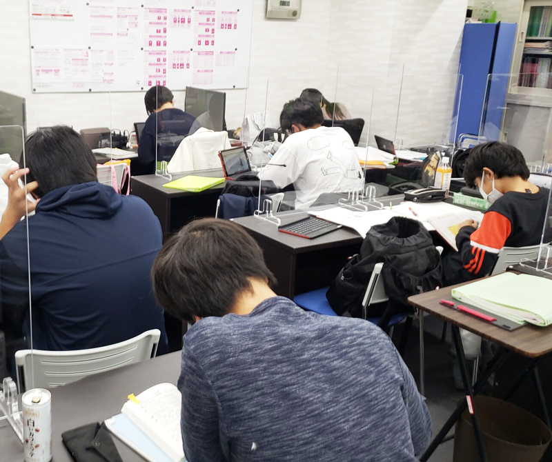 通塾回数・時間無制限の環境と、思考を止めない対話型指導を徹底しています。