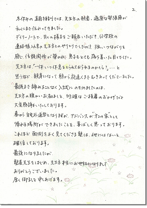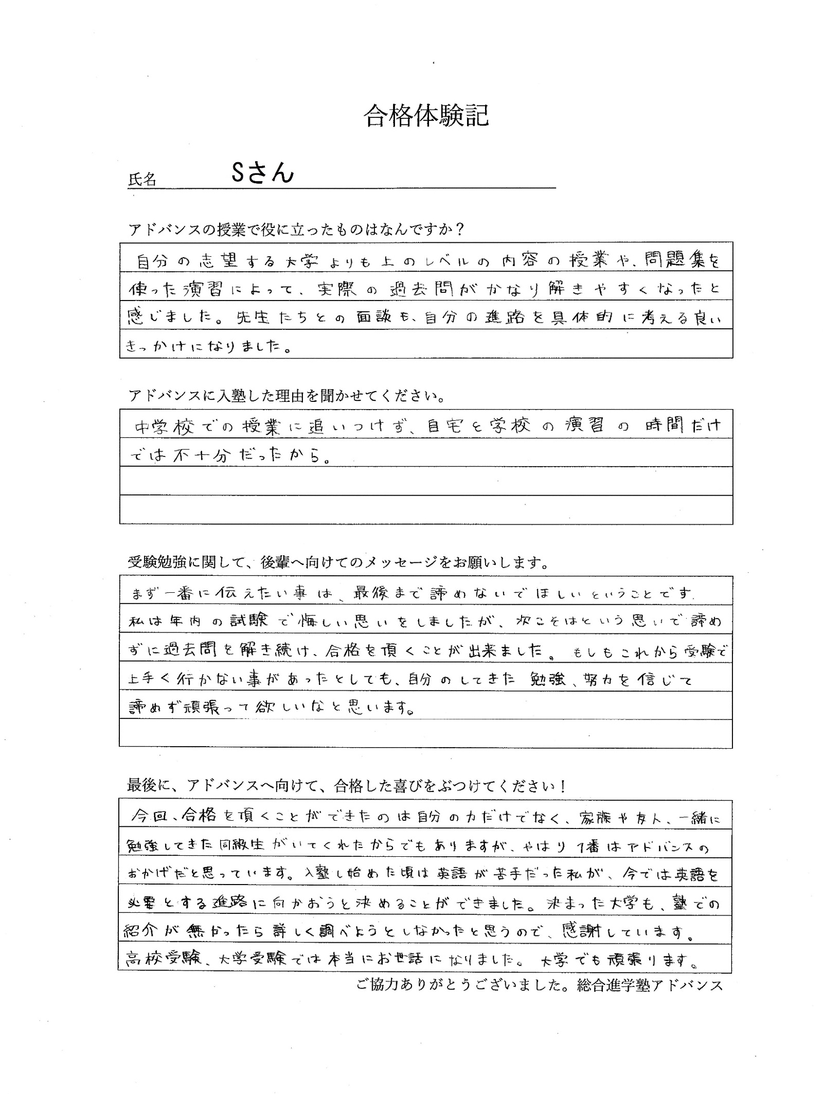アドバンスでの学びを通じて身につく「自ら考え、学びをコントロールする姿勢」は、受験という壁を突破する強力な武器となるだけでなく、将来の人生においても輝き続ける「一生モノの財産」になると確信しています。